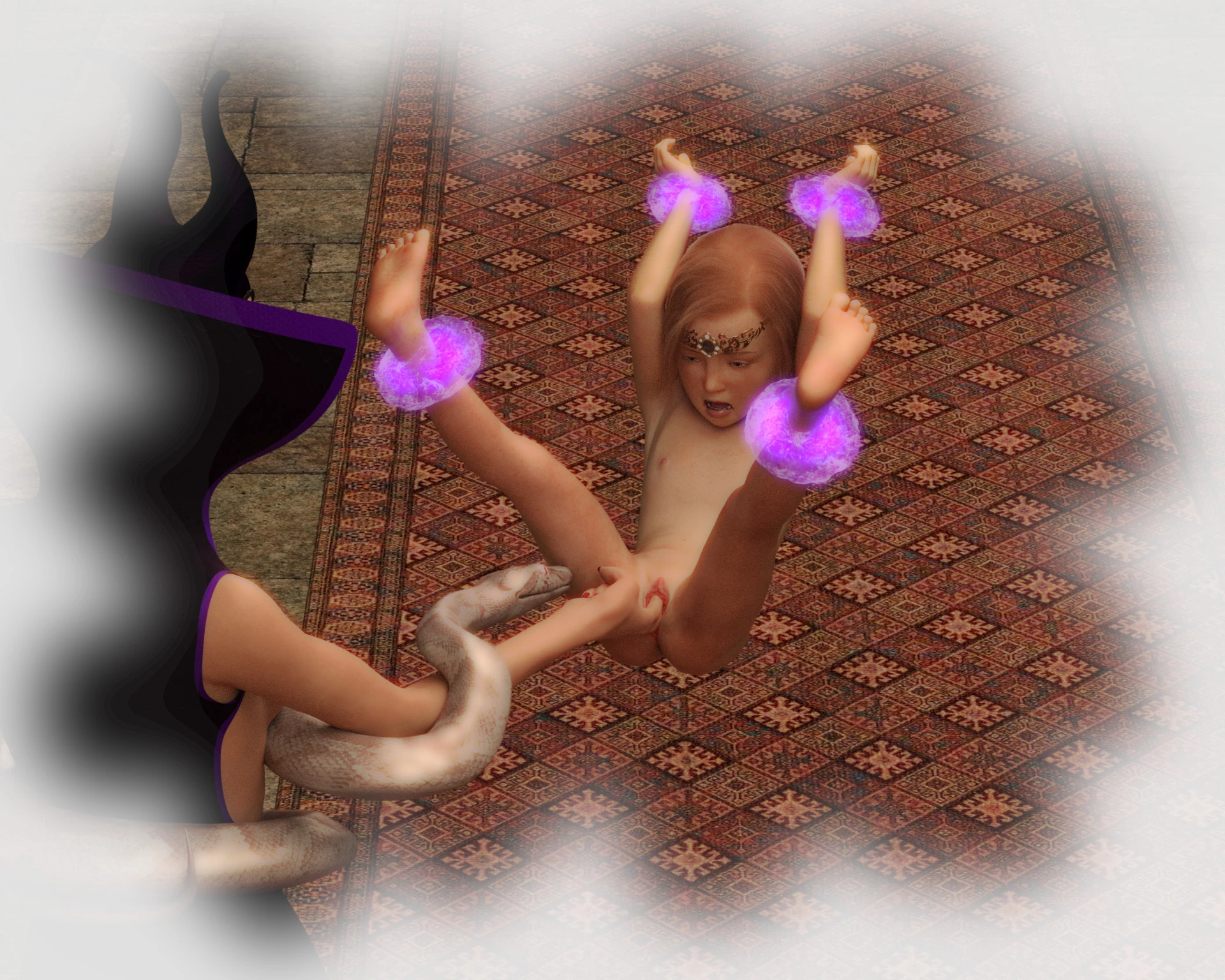The horny daddy goes in the his lilttle daughter’s bedroom to use her like a fuckable toy! And he plays with her nipples and mouth while she sees a dream of being raped by witch!