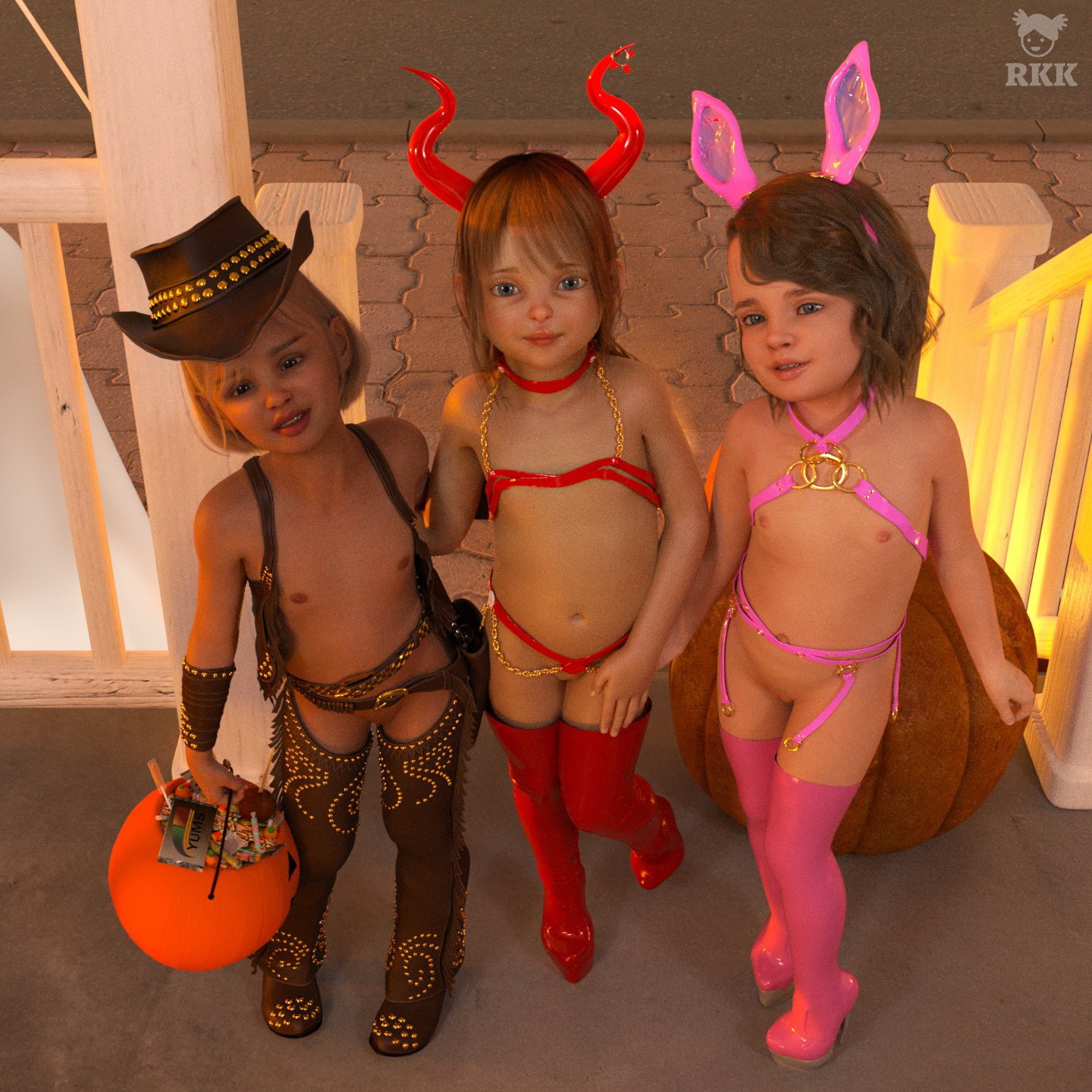 These cute and sexy little girls and boys very love trick and treat and have fun with horny men and each others on this special Halloween night! 😉